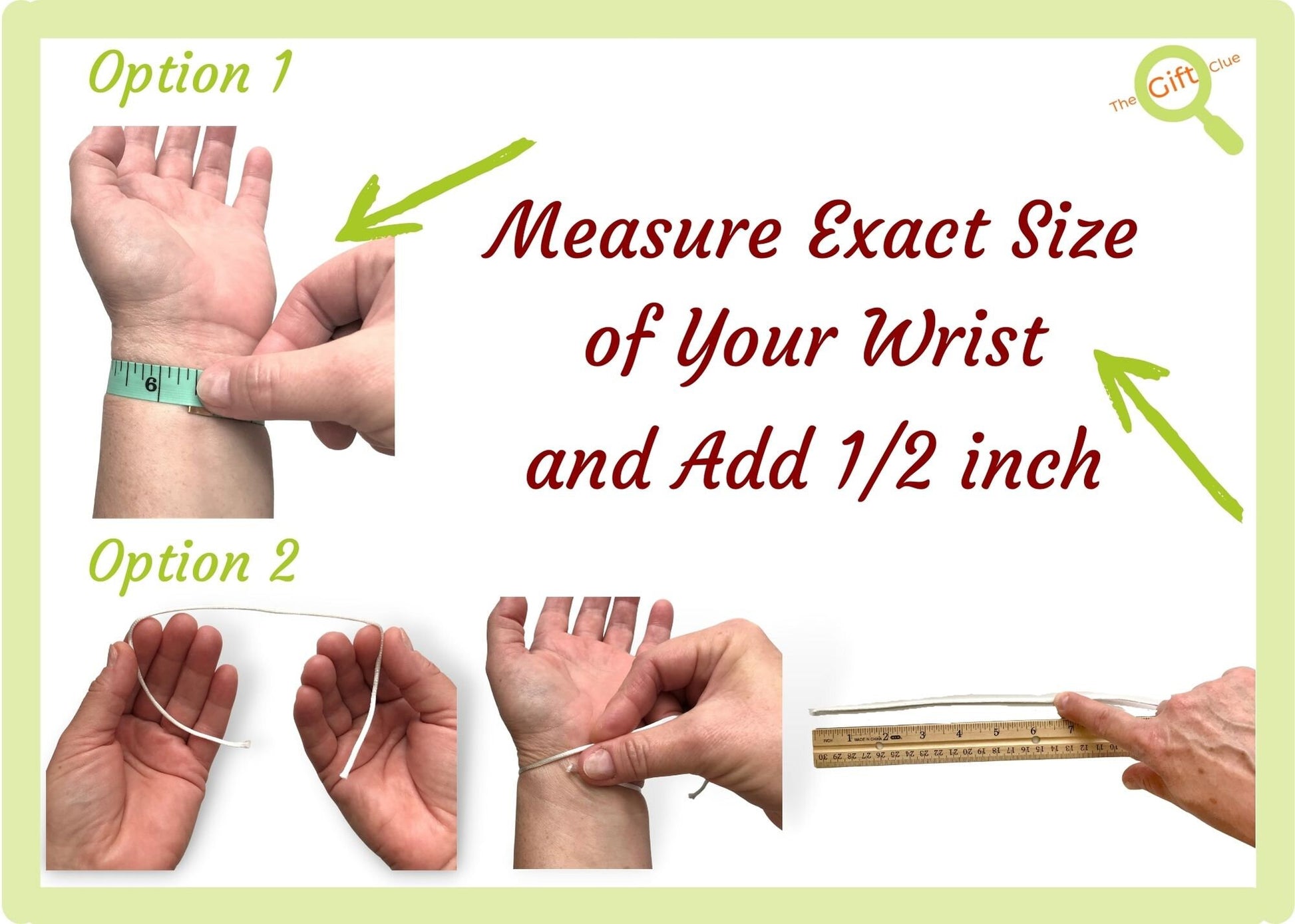 Wrap a string or measuring tape snugly around your wrist.
