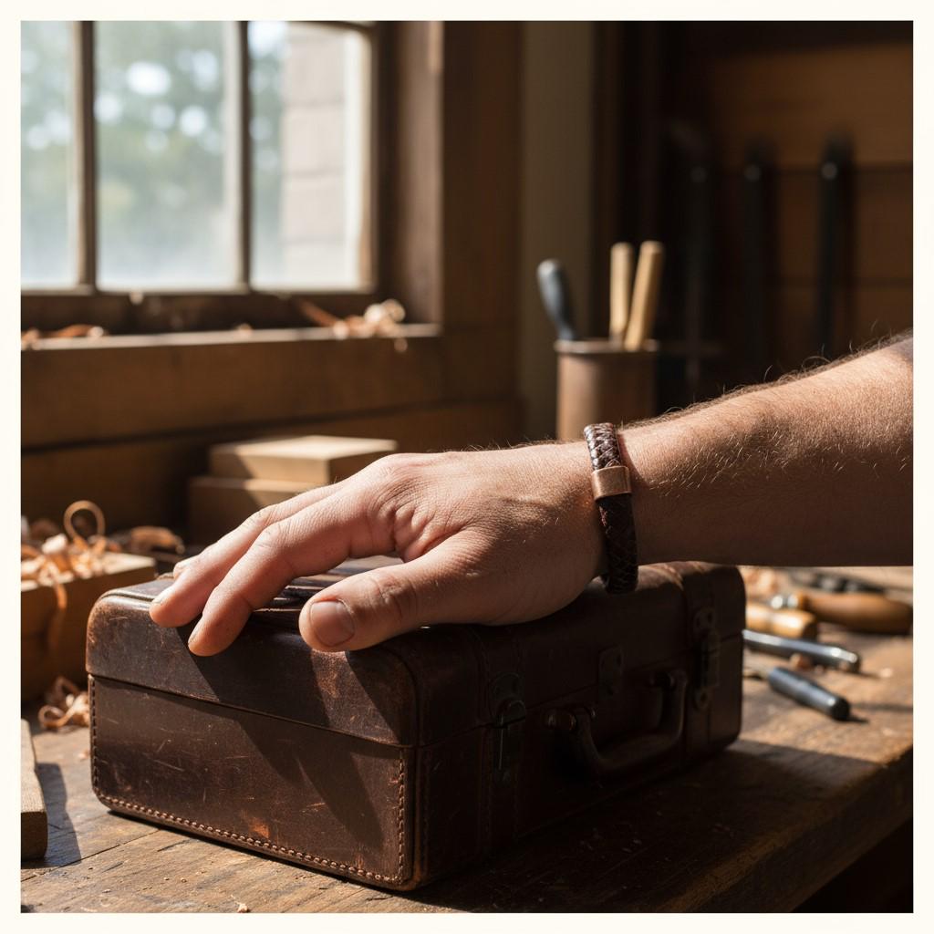 This Braided Leather Bracelet features antique copper accents and a strong magnetic clasp, creating a refined and timeless look suitable for both men and women. It makes a thoughtful anniversary gift and a high-quality everyday accessory.